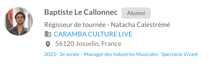Dans notre nouvelle rubrique « Hall of Fame », on met en lumière les alumni qui prennent de nouvelles fonctions : aujourd’hui, bravo à Baptiste Le Callonnec, diplômé EMIC promo 2023, qui devient régisseur de tournée chez Caramba.